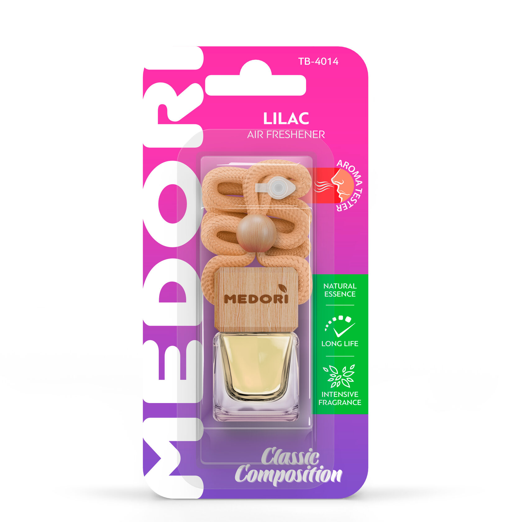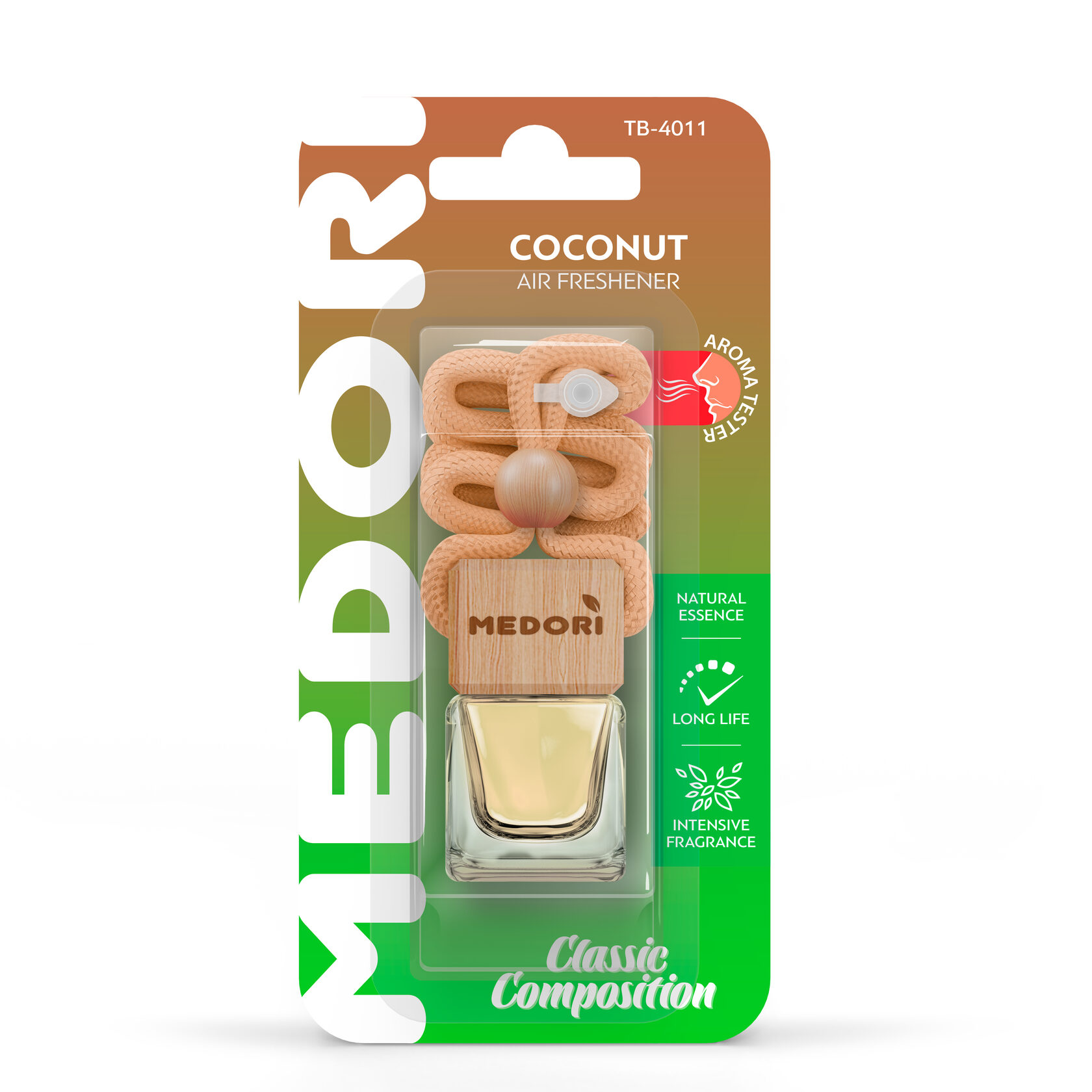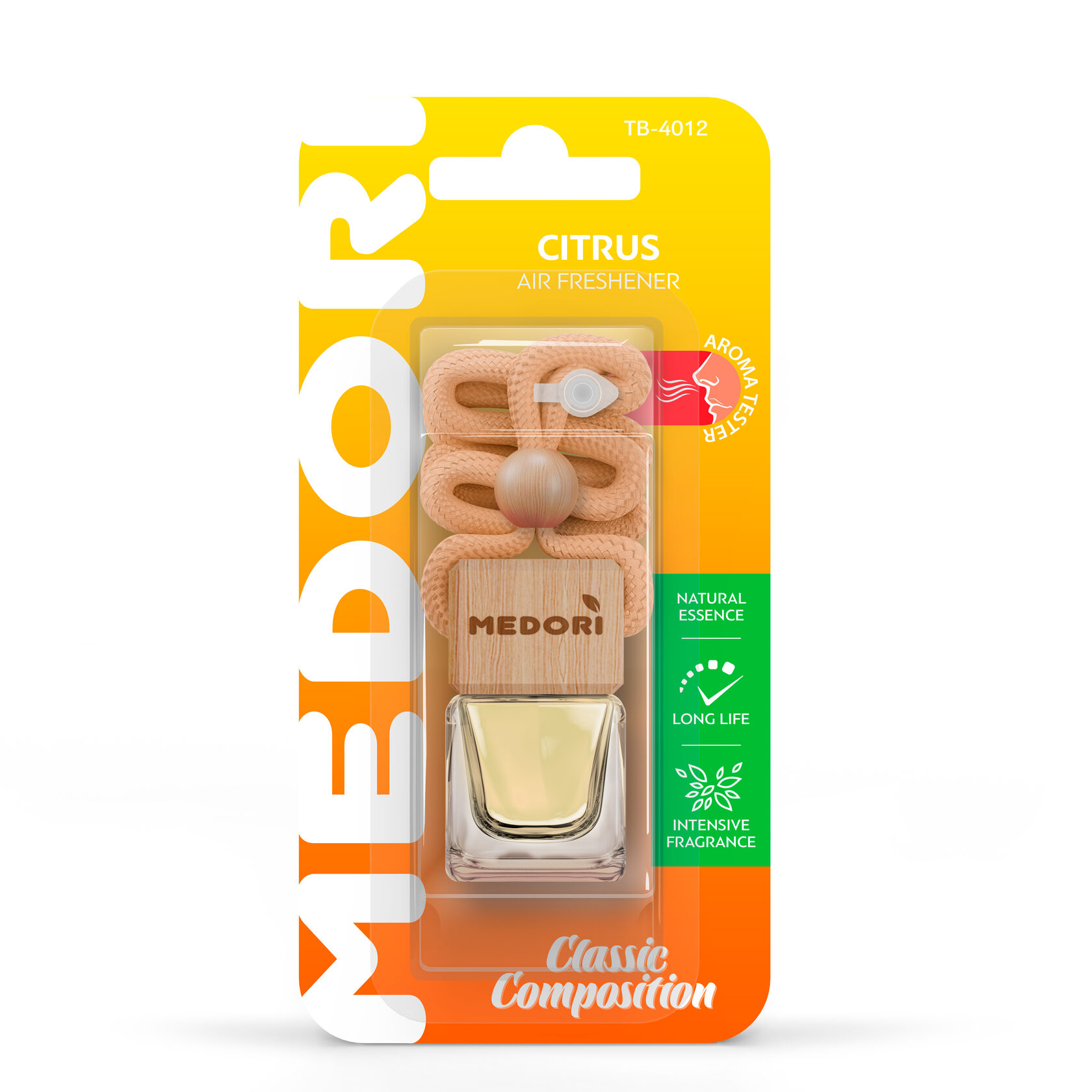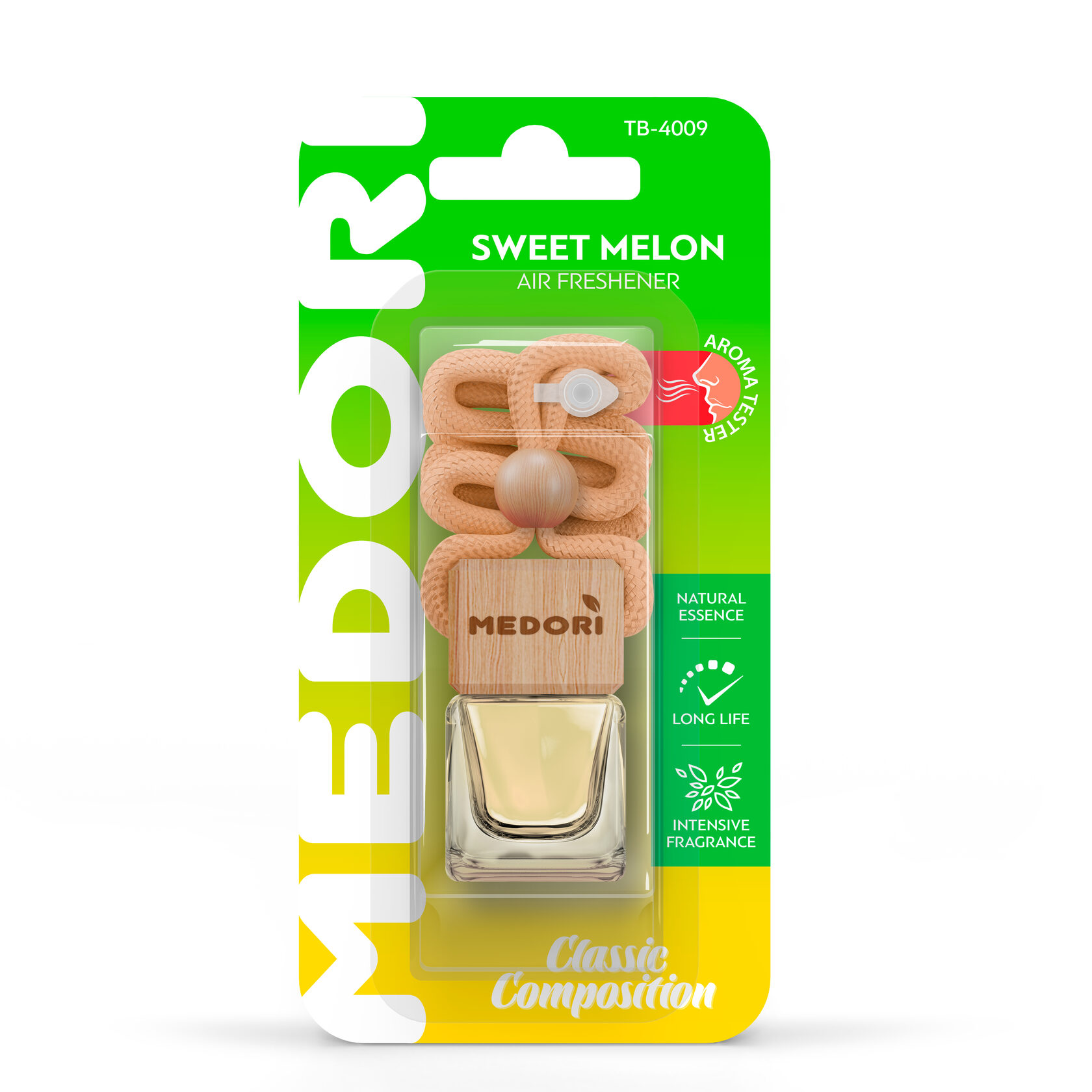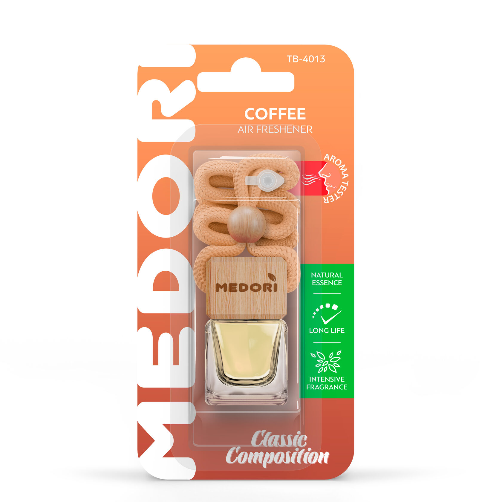 Подвесная квадратная бутылочка с крышкой из высококачественного бука. При изготовлении использованы стойкие парфюмированные композиции с использованием аромамасел, специально произведенные для данного типа ароматизатора ведущими европейскими производителями.