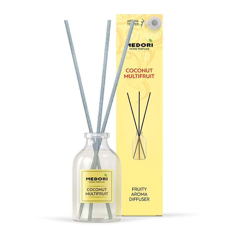 Аромадиффузор для дома с палочками из новой коллекции фруктовых ароматов создан на основе уникальной ароматической композиции от ведущих европейских производителей из натуральных аромамасел.